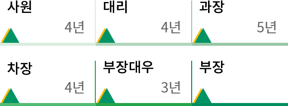 사원4년, 대리 4년, 과장 5년, 차장 4년, 부장대우 3년, 부장
