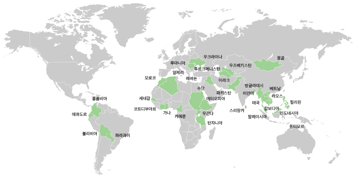 현대아산은 ODA 사업의 전 과정을 직접 수행해온 강점을 바탕으로, 각국의 환경에 최적화된 맞춤형 사업을 진행해왔습니다. 아시아, 아프리카, 중남미 등 전 세계를 대상으로 사업을 펼쳐왔으며, 축적된 전문성을 통해 지속가능한 발전과 효과적인 솔루션을 실현해왔습니다.