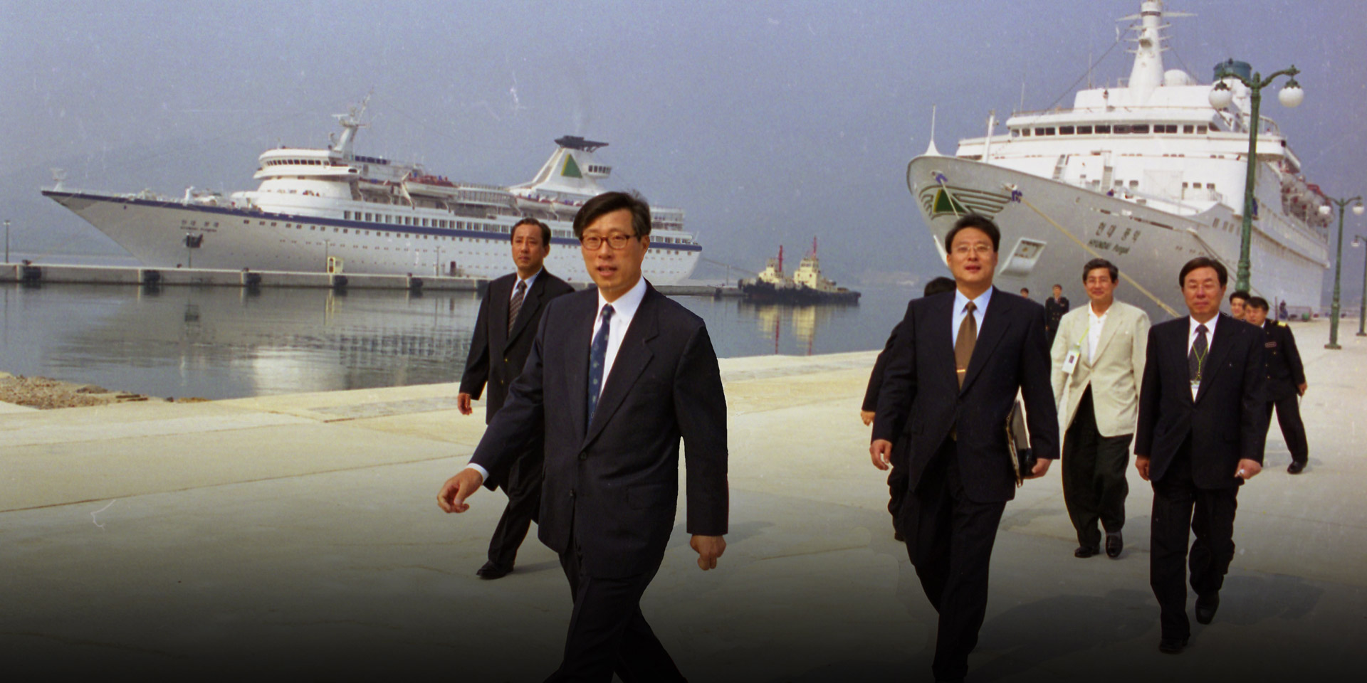 2000.5.24 금강산 고성항 부두 준공식 정몽헌 회장이 완공된 고성항 부두를 둘러보고 있다. 고성항 부두는 30,000톤급 선박 4척이 동시 접안이 가능하다.