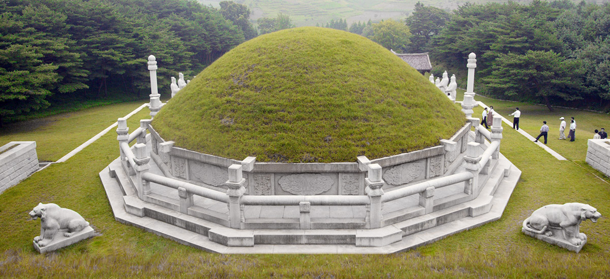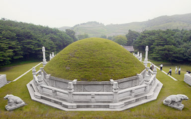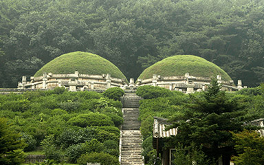 고려의 시조, 왕건의 무덤인 왕건왕릉은 개성남대문에서 북쪽으로 6km 떨어진 해선리에 자리잡고 있습니다. 1994년 개건하며 세운 ‘고려태조왕건왕릉개건비’가 능앞에 있으며 무덤안을 직접 관람할 수 있게 되어 있는 점과 공원이 조성되어 있는 점이 특징입니다.