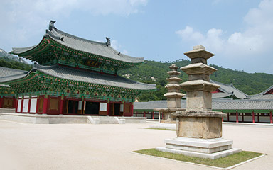 개성 시내에서 북쪽으로 송도저수지를 지나면 박달산 기슭 영통골에 천태종의 시조인 대각국사 의천에 의해 창건된 영통사가 위치하고 있습니다. 영통사는 고려시대의 대표적인 사찰로 여러 차례 전란으로 폐사되었다가 최근 남과 북이 합심하여 복원하였습니다. 경내에는 북측의 문화재로 지정된 대각국사비, 당간지주, 삼층석탑, 오층석탑이 자리하고 있습니다.