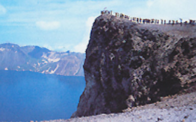 백두산 정상은 산험한 산악과 수십, 수백m를 깎아지는 듯 솟아있는 암벽 그리고 태고부터 천지의 아름다운 풍경을 이루는 바위 등이 성채를 이룹니다.