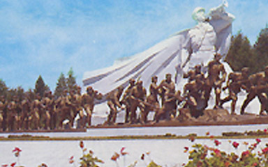 삼지연의 큰 못 앞에는 백두산을 배경으로 1979년에 세워진 삼지연기념비가 있습니다. 이는 봉화탑의 높이만 50m, 5개의 주제와 80여 인물상의 대조각군이 장관을 이룹니다. 삼지연의 겨울은 스포츠의 천국이라 할 수 있습니다.