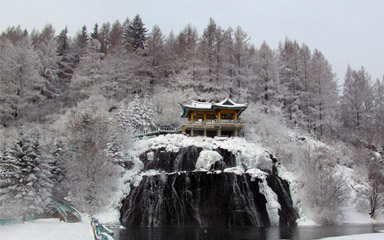특히, 겨울철 온천지가 빙설에 덮혀도 폭포수는 얼지 않고 흘러 내려 얼음 기둥을 만들고 그 물안개는 사방으로 흩어져 주위에 서리꽃을 활짝 피게합니다.