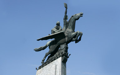 평양에는 여러 기념비들이 산재해 있습니다. 만수대 지역에는 만수대 대기념비, 천리마 동상 등이 있으며, 1972년 김일성 주석의 생일을 기념해 세운 높이 20m의 황금동상이 있습니다.